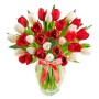 Florero Con 40 Tulipanes Colores Rojos y Blancos